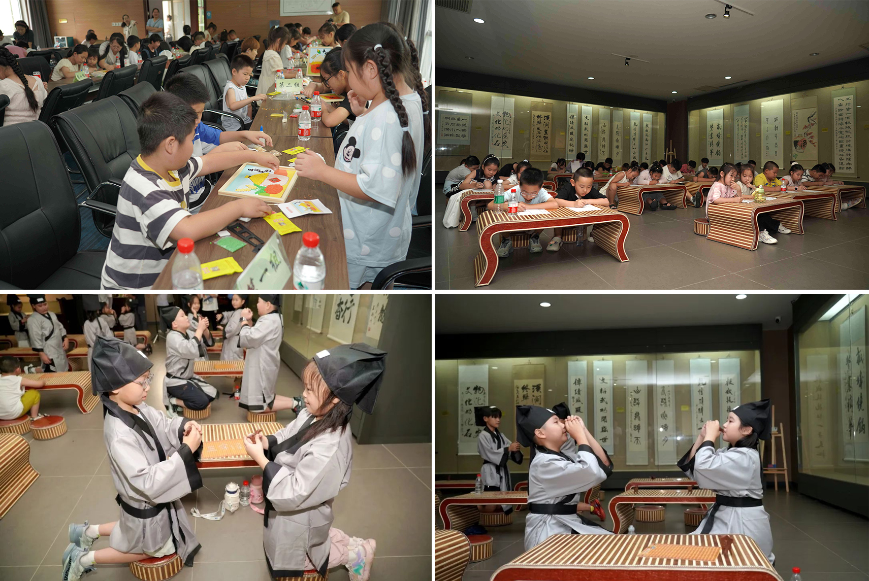 實踐點燃創造火花。在多媒體廳,孩子們巧手拼貼五谷雜糧,創作寓意深遠的糧畫作品,于指尖再次感悟“粒粒皆辛苦”。字畫廳則化作文雅殿堂,孩子們在導師引領下,研習傳統酒禮中的賓主之道、長幼之序與君子之風,舉手投足間傳承著文明的儀軌。